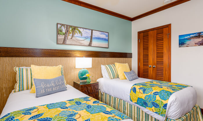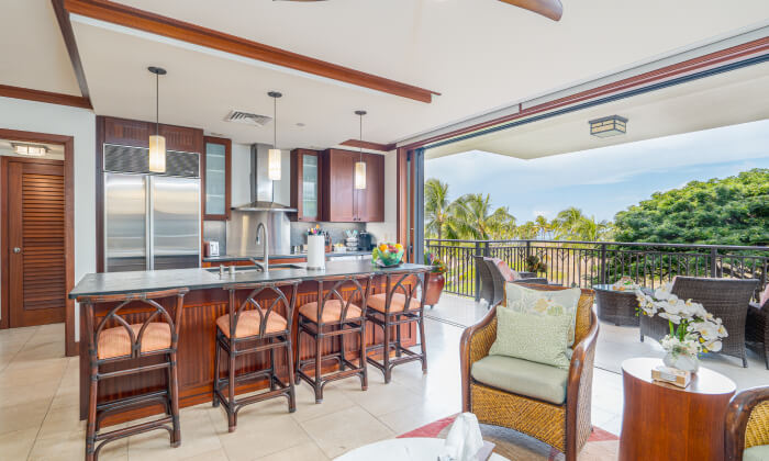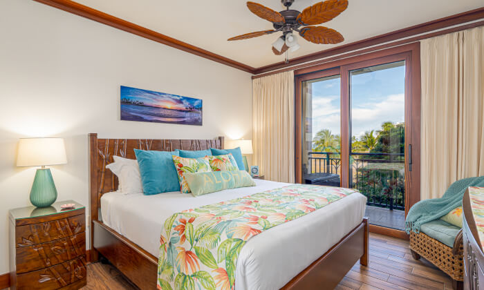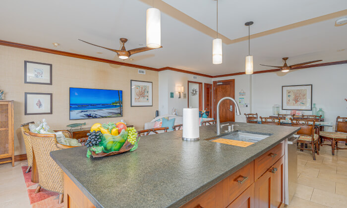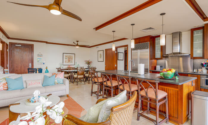 This family-friendly villa with tropical vibes and décor provides comfortable bedding for up to 6 people and offers close-by views of the ocean and beach from the large lanai. Equipped with a full-size kitchen and necessities, you can enjoy preparing scrumptious Hawaiian dishes!
